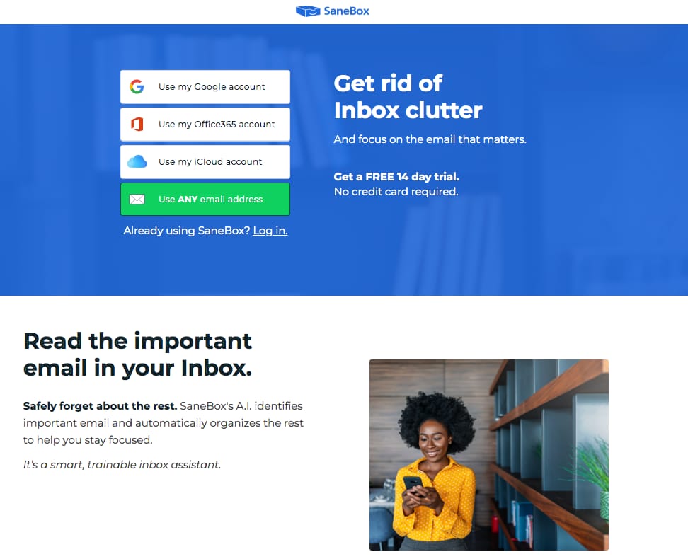 SaneBox is an AI-powered service designed to help users manage their email inboxes.